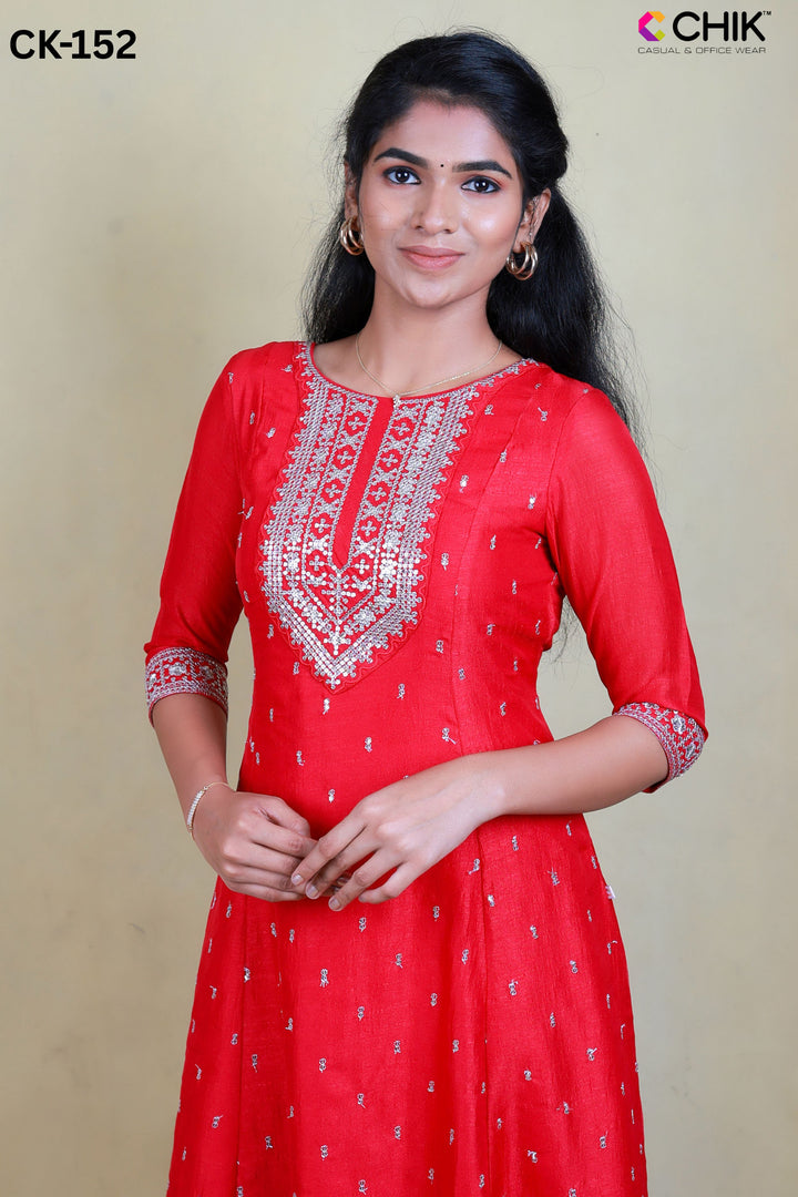 CK-152 PINK COLOUR VICHITRA GEORGETTE FABRIC ANARKALI FIT & YOKE EMBROIDERY WORK & ALL OVER BUTTAS WITH SEQUENCE TOP LENGTH-46' SLEEVE-16