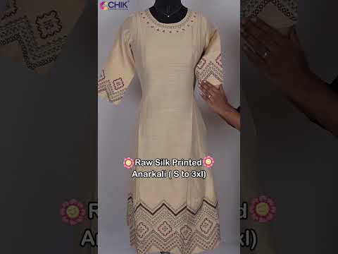 CK-04 Beige & Raw Silk Anarkali With Geometric Print With Mirror Work.Top Length-46 Inch,Sleeve Length-16 Inch.
