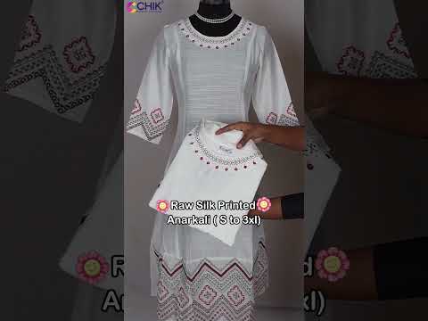 CK-05 White & Raw Silk Anarkali With Geometric Print With Mirror Work.Top Length-46 Inch,Sleeve Length-16 Inch.