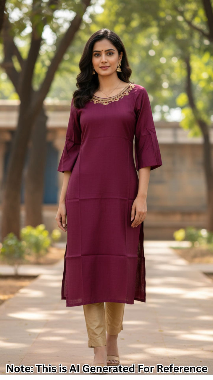 CK-11 Maroon Colour & Roman Silk Fabric Straight Cut Kurta Fit With Gold Beads Hand Embroidery Work.Top Length-44 Inch,Sleeve Length-16 Inch.
