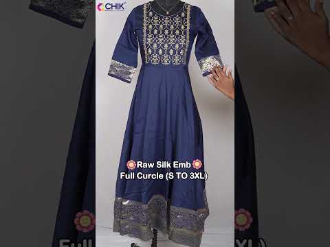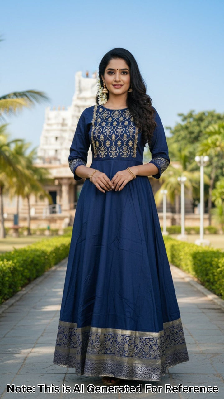 CK-25 Navy Blue Colour Raw Silk Fabric Full Flare Anarkali Fit & Traditional Embroidery Work With Gold Zari Top Length-52 Inch, Sleeve-16 Inch