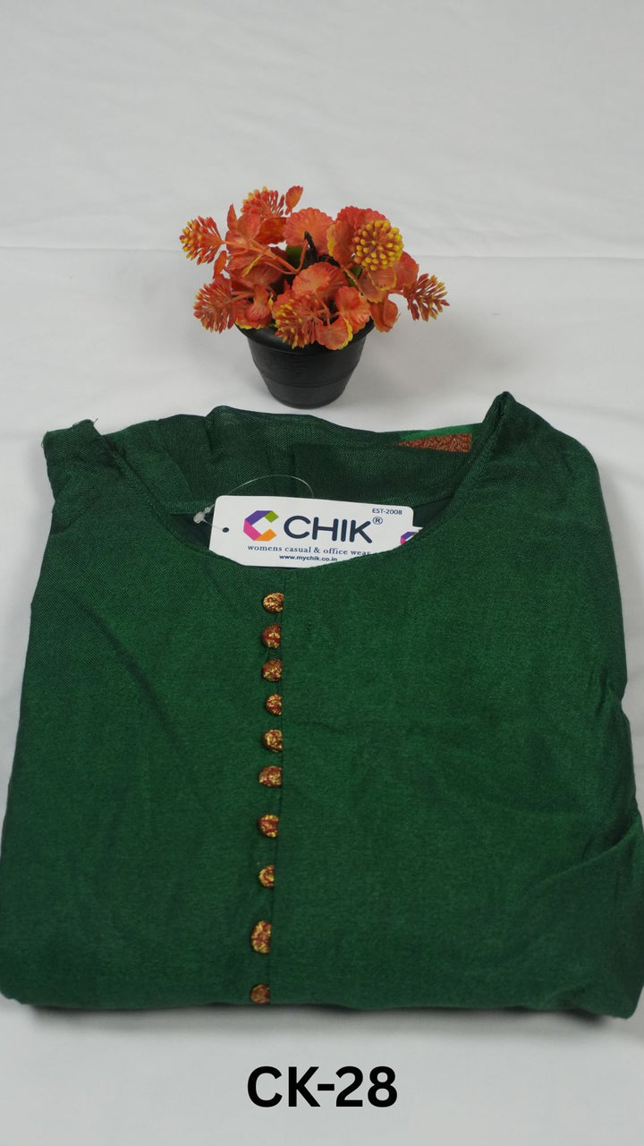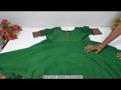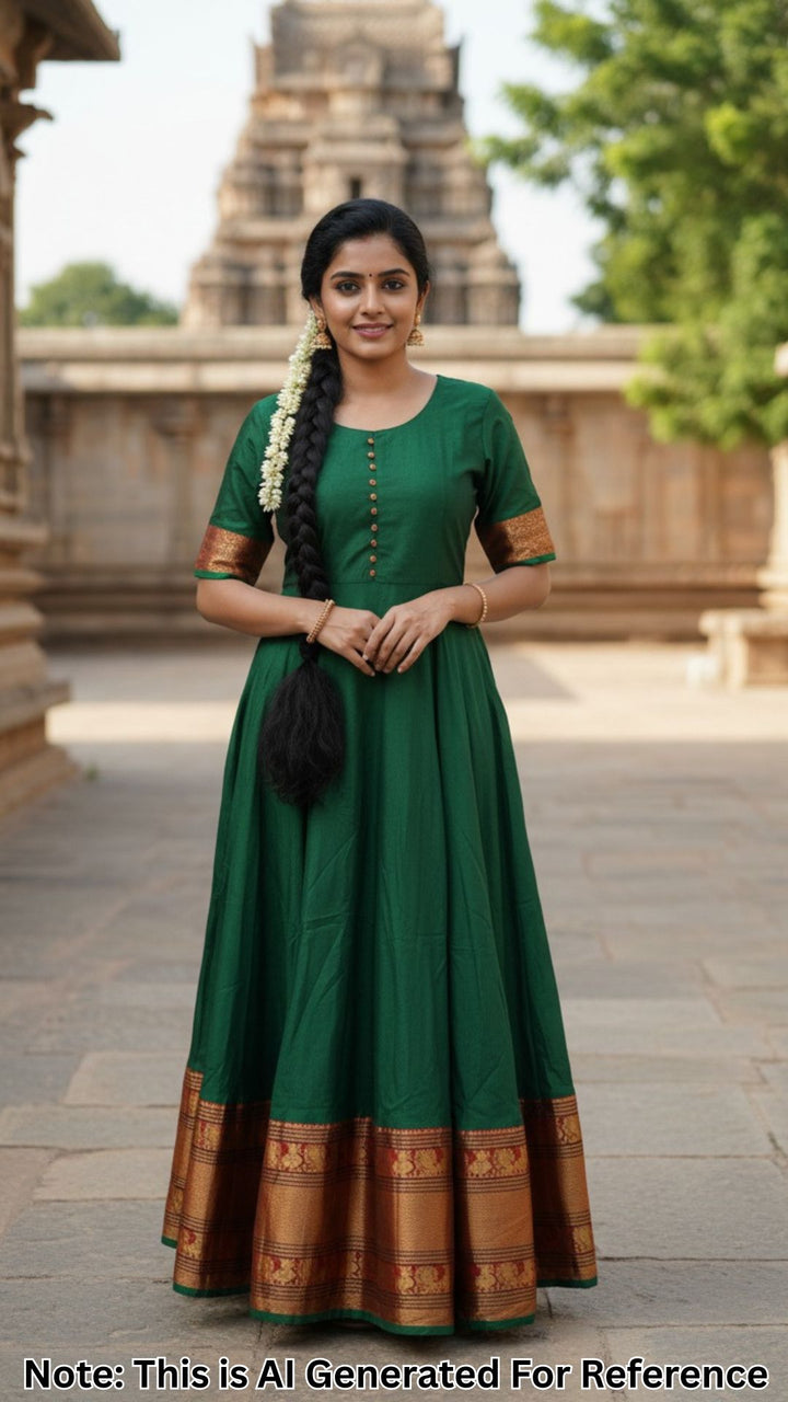 CK-28 Bottle Green Colour Narayani Pattu Silk Fabric Full Flare Anarkali Fit With Zari Border Work Top Length-52 Inch,Sleeve-Elbow Length.