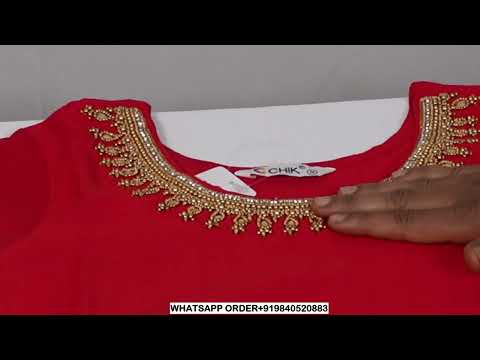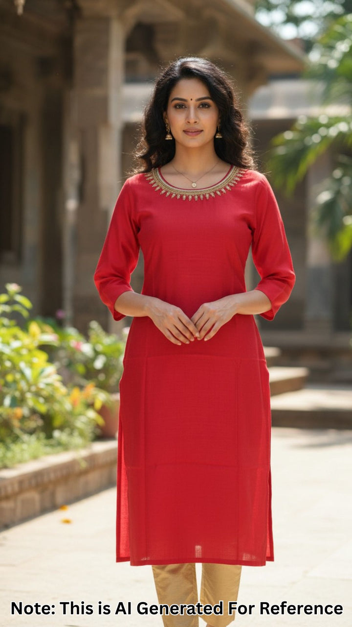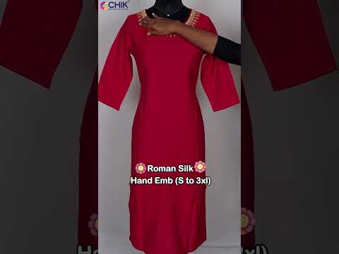 CK-31 Red Colour Roman Silk Fabric Straight Cut Kurta & Hand Embroidery Work With Golden Beads Top Length-44 Inch ,Sleeve Length-16 Inch.