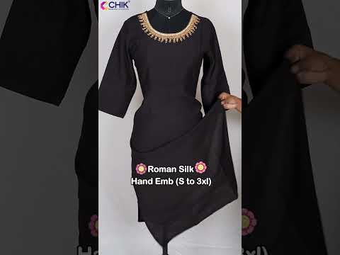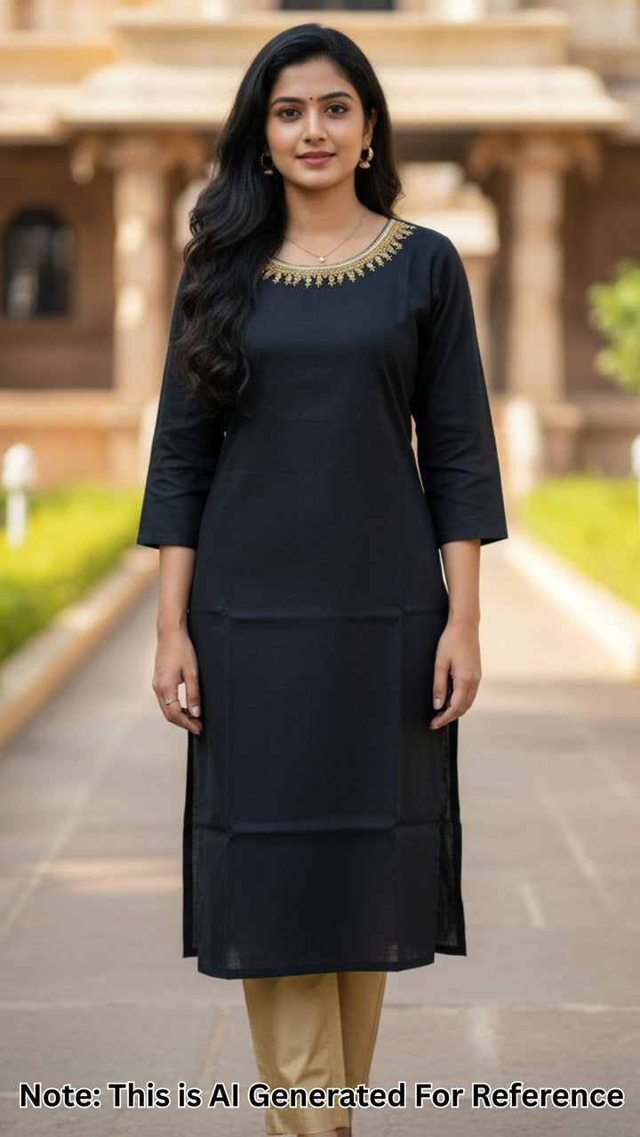 CK-32 Black Colour Roman Silk Fabric Straight Cut Kurta Fit & Hand Embroidery Work With Golden Beads Top Length-44 Inch ,Sleeve Length-16 Inch.