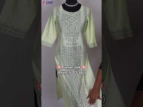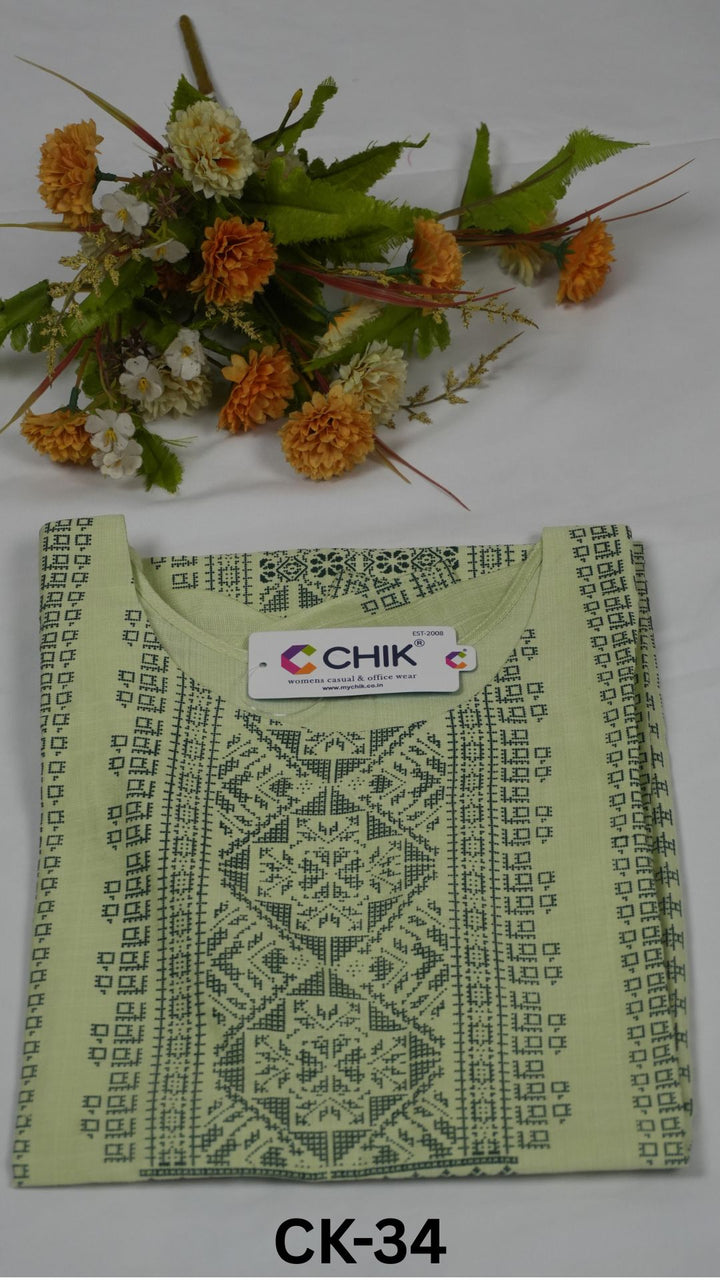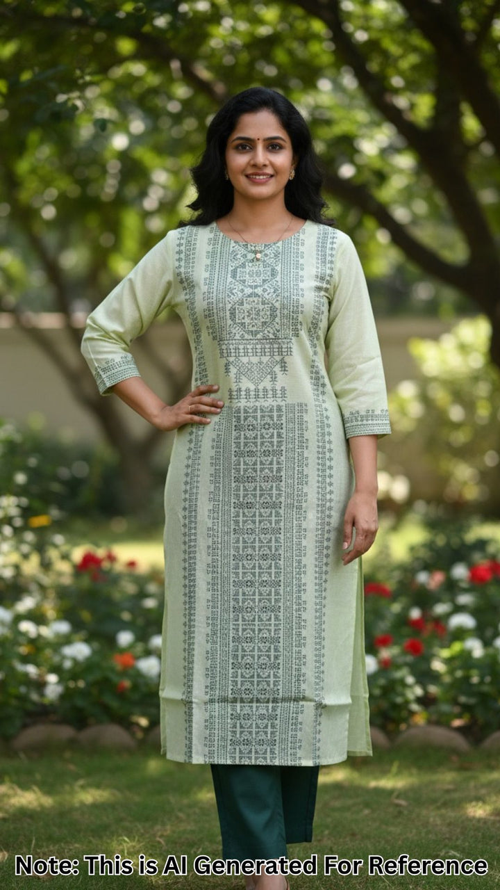 CK-34 Light Green Colour Roman Silk Fabric Straight Cut Kurta Fit & Geometric Print Top Length-44 Inch, Sleeve Length-16 Inch.