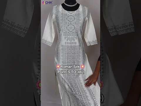 CK-35 White Colour Roman Silk Fabric Straight Cut Kurta Fit & Geometric Print Top Length-44 Inch, Sleeve Length-16 Inch.