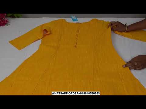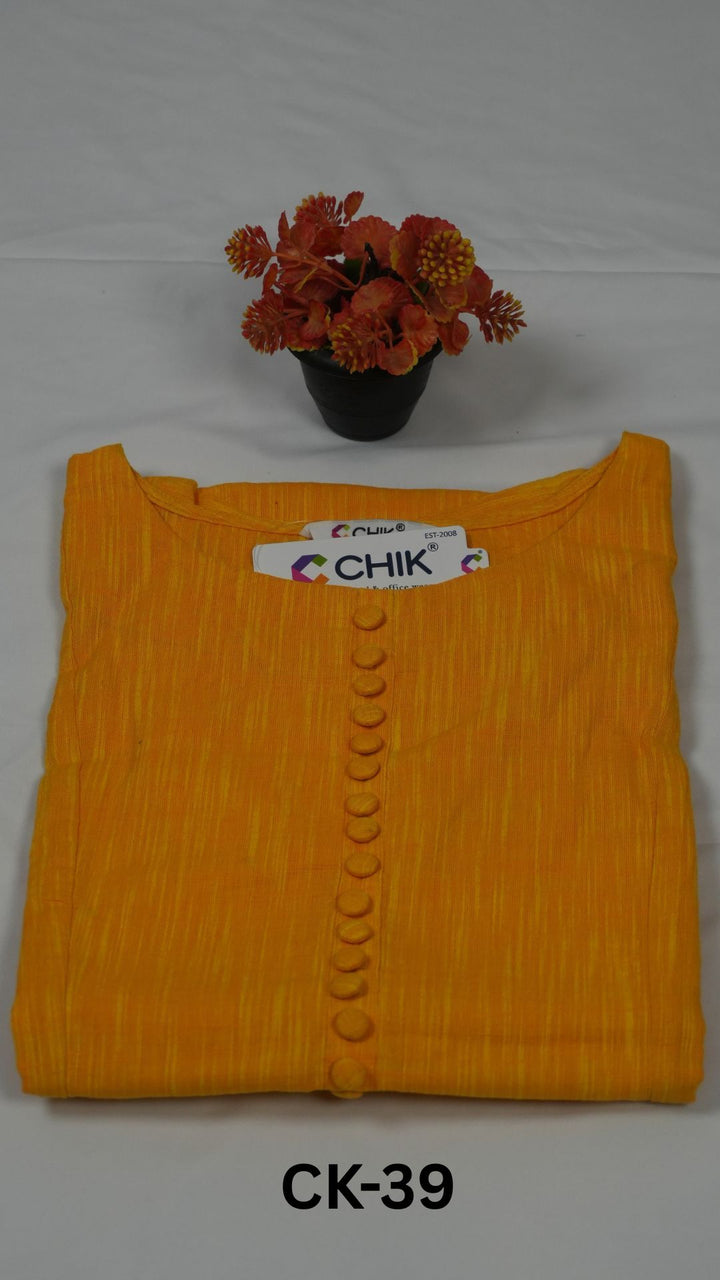 CK-39 Mango Yellow Colour Two Tone Cotton Fabric Anarkali Fit & Fabric Buttons Work Top Length-46 Inch,Sleeve Length-16 Inch.