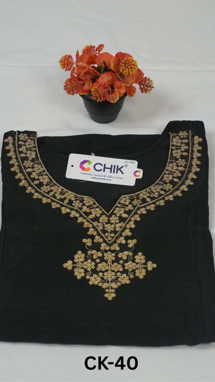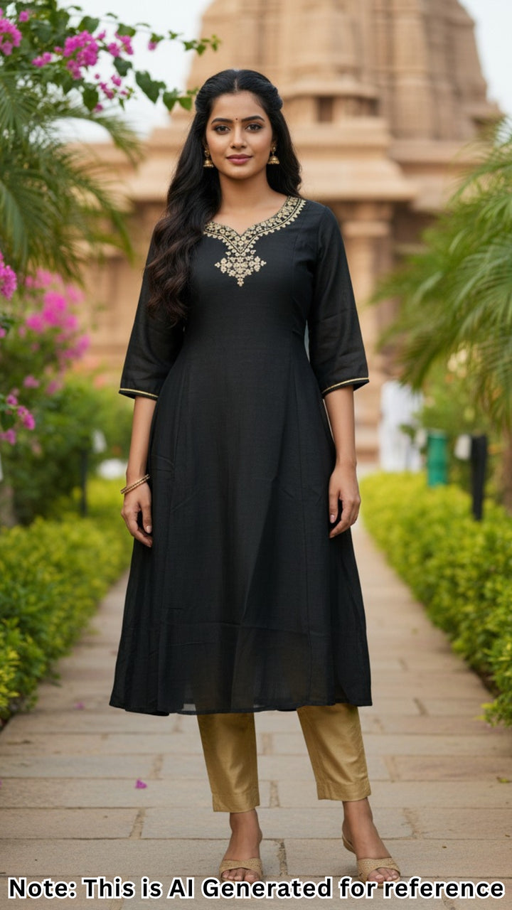 CK-40 Dark Olive Green Colour Vichitra Georgette Fabric Anarkali Fit & Floral Embroidery Work With Gold Zari Top Length 46 Inch, Sleeve Length- 16 Inch With Lining.