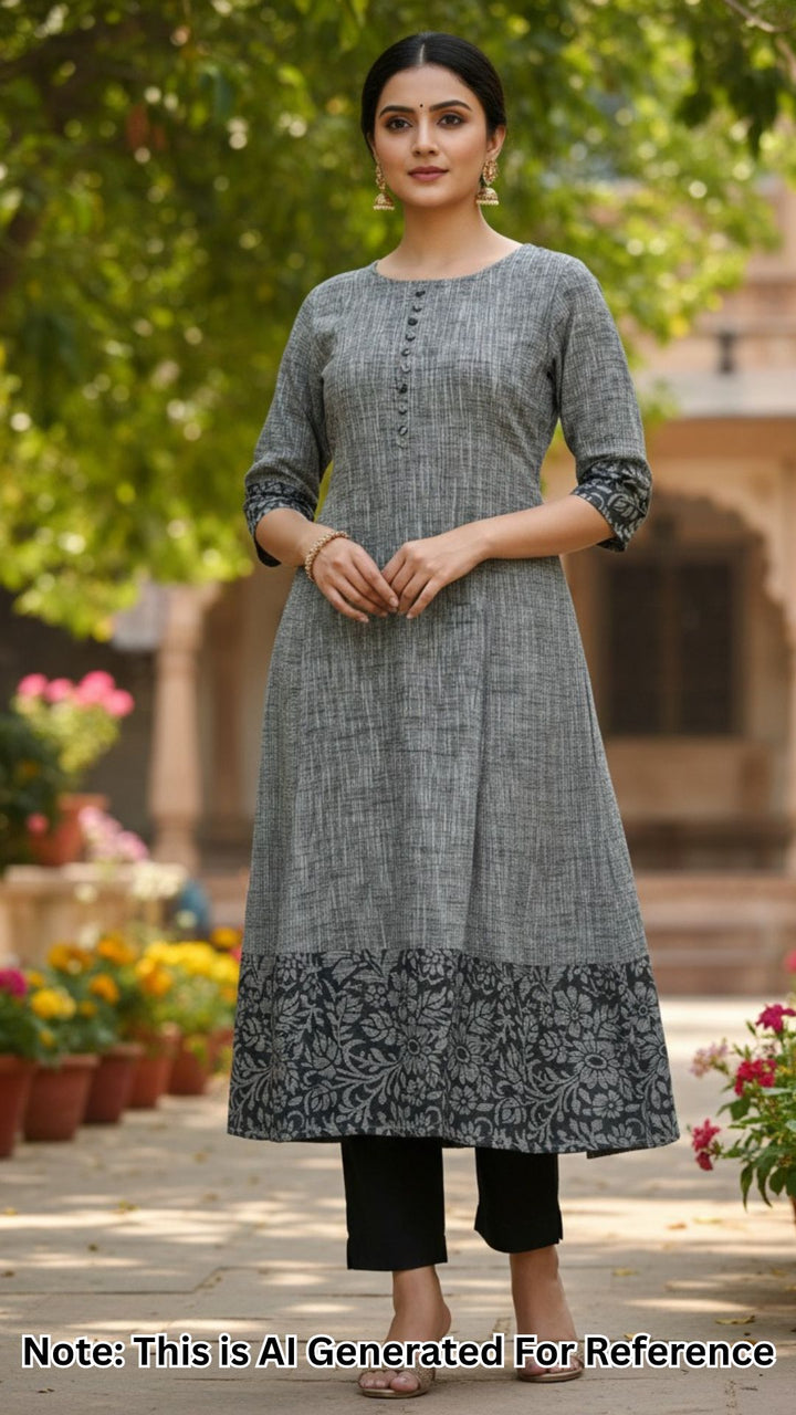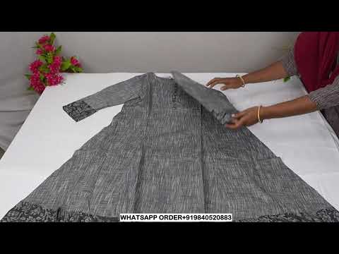 CK-45 Dark Gray Colour Two Tone Cotton Fabric Anarkali Fit & Bottom Floral Print Work With Fabric Buttons Top Length-46 Inch Sleeve Length-16 Inch.