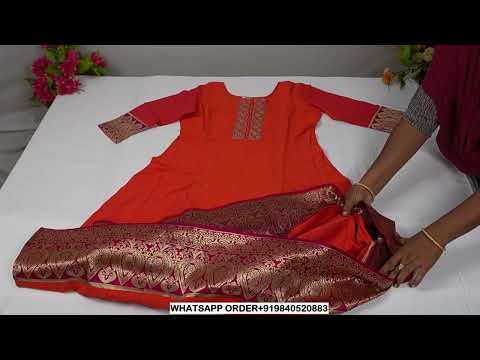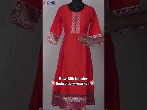 CK-52 Orange Colour Raw Silk Fabric Anarkali Fit & Floral Embroidery Work With Gold Zari & Foil Mirror Top Length-46 Inch Sleeve Length-16 Inch