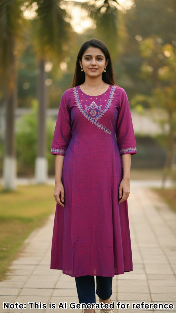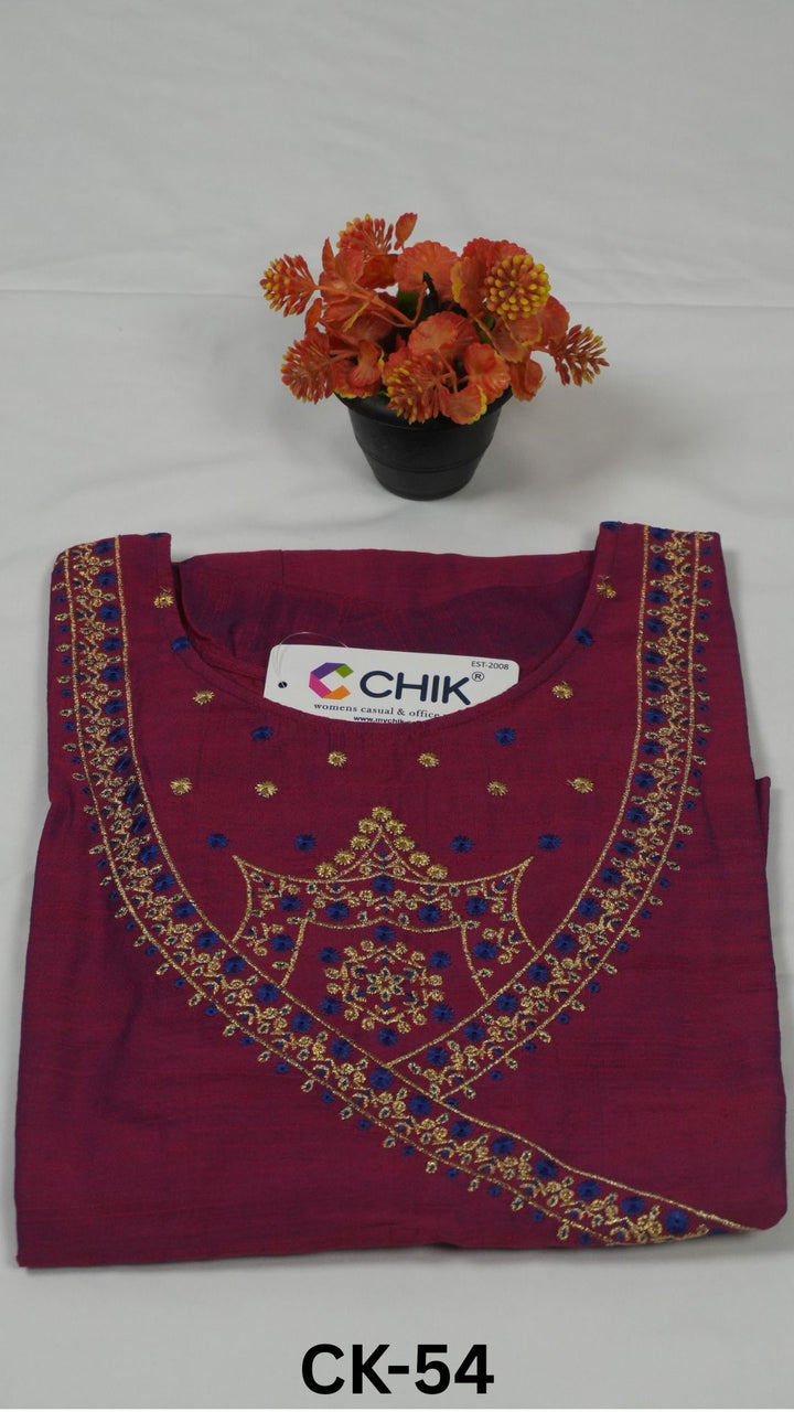 CK-54 Mejanta Colour Raw Silk Fabric Anarkali Fit & Traditional Embroidery Work With Gold Zari Top Length-46 Inch Sleeve Length-16 Inch