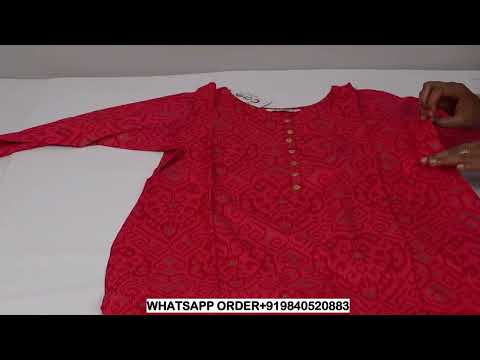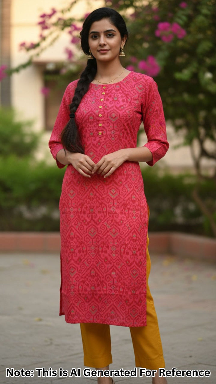 CK-71 Tomato Red Colour Rayon Fabric Straight Cut Kurta With Muatard Yellow Colour Cigar Pant & Gold Buttons Work Top Length-44 inch Sleeve Length-16 Inch