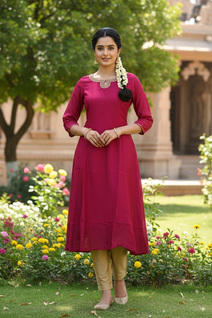 CK-73 Pink Colour Vichitra Georgette Fabric Anarkali Fit & Gold Zari Embroidery Work Top Length-46 Inch Sleeve Length-16 Inch With Lining.
