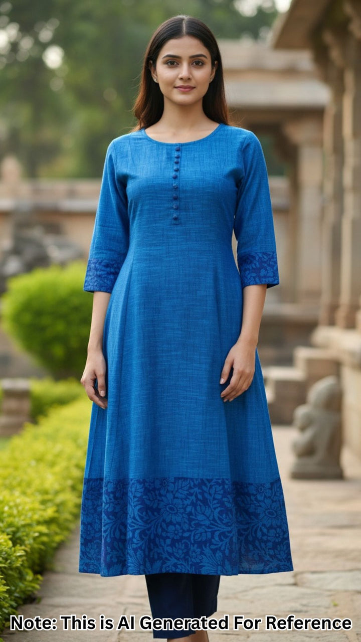 CK-76 Royal Blue Colour Two Tone Cotton Fabric Anarkali Fit & Bottom Floral Print Work With Fabric Buttons Top Length-46 Inch Sleeve Length-16 Inch.