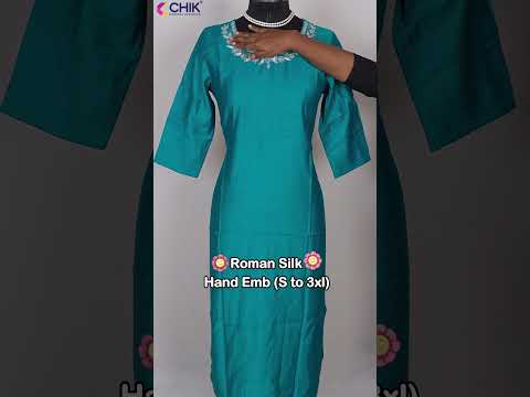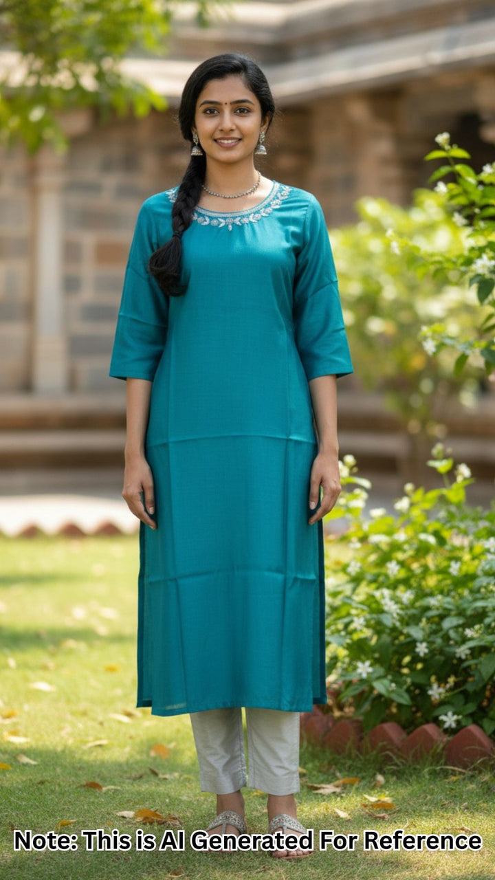 CK-77 Rama Blue Colour Roman Silk Fabric Straight Cut Kurta Fit & Hand Embroidery Work With Silver Beads Top Length-44 Inch Sleeve Length-16 Inch