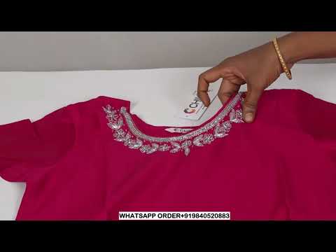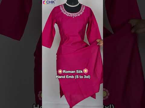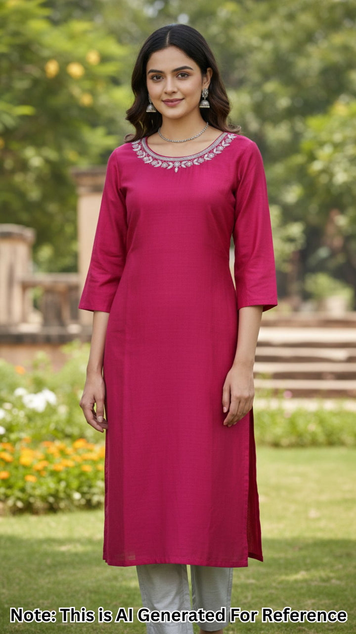 CK-78 Pink Colour Roman Silk Fabric Straight Cut Kurta Fit & Hand Embroidery Work With Silver Beads Top Length-44 Inch Sleeve Length-16 Inch