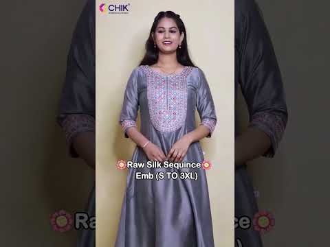 CK-146 DARK GRAY COLOUR RAW SILK FABRIC ANARKALI FIT & YOKE EMBROIDERY WORK WITH SEQUENCE TOP LENGTH-46' SLEEVE-16.