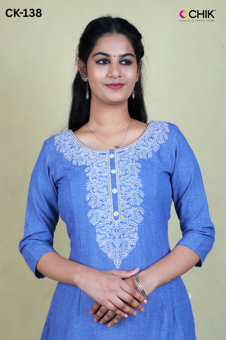 CK-138 LAVENDER COLOUR SOUTH COTTON FABRIC ANARKALI FIT & YOKE CLASSIC EMBROIDERY WORK WITH BUTTONS TOP LENGTH-46' SLEEVE-16'