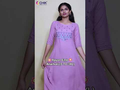 "Charming light pink rayon Anarkali with floral yoke embroidery, 46” length and 16” sleeves. A stylish blend of comfort and elegance for festive wear."