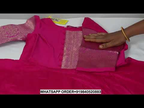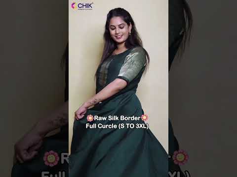 CK-119 BOTTLE GREEN COLOUR RAW SILK FABRIC FULL FLARE ANARKALI FIT & ZARI BORDER WORK WITH FABRIC BALLS TOP LENGTH-52' SLEEVE-ELBOW LENGTH.