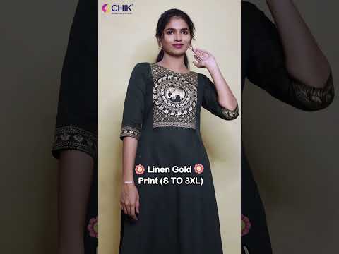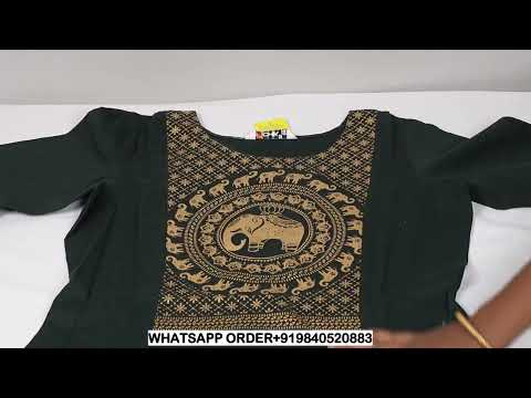 CK-112 BOTTLE GREEN COLOUR LINEN FABRIC ANARKALI FIT & PLACEMENT GOLD PRINT TOP LENGTH-46' SLEEVE-16'.