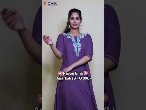 CK-110 VIOLET COLOUR RAYON FABRIC ANARKALI FIT & FLORAL EMBROIDERY WORK TOP LENGTH-46' SLEEVE-16'.