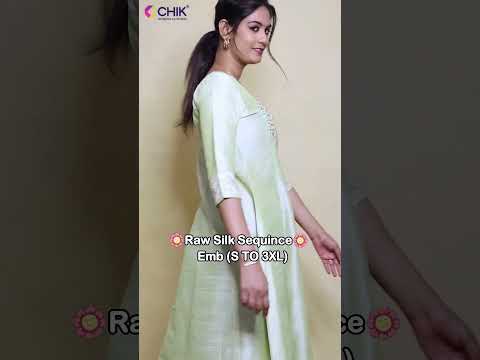 CK-108 LIGHT PISTA GREEN COLOUR RAW SILK FABRIC ANARKALI FIT & YOKE EMBROIDERY WORK WITH SEQUENCE TOP LENGTH-46' SLEEVE-16'.