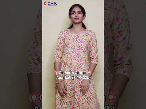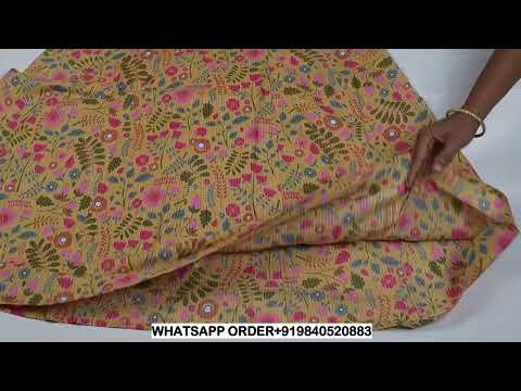 CK-106 LIGHT YELLOW COLOUR CAMBRIC COTTON FABRIC ANARKALI FIT & ALL OVER FLORAL PRINT WITH BUTTONS WORK TOP LENGTH-46' SLEEVE-16'.