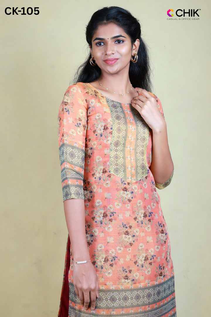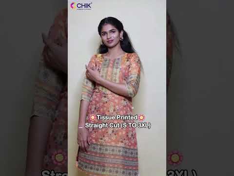CK-105 ORANGE COLOUR TISSUE FABRIC STRAIGHT CUT KURTA FIT & ALL OVER FLORAL DIGITAL PRINT WITH LINING TOP LENGTH-44' SLEEVE-16'.