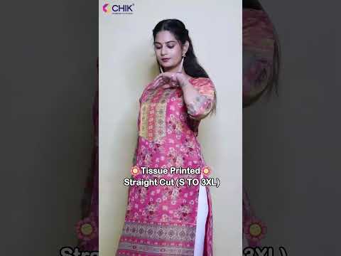 Pink tissue fabric straight-cut kurta with all-over floral digital print and lining. Top length 44", sleeve length 16" – lightweight, vibrant, and perfect for any occasion.