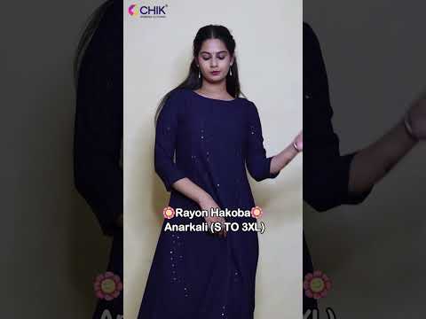 CK-101 NAVY BLUE COLOUR RAYON HAKOBA FABRIC ANARKALI FIT & ALL OVER CHIKANKARI EMBROIDERY WORK WITH SEQUENCE TOP LENGTH-46' SLEEVE-16'.