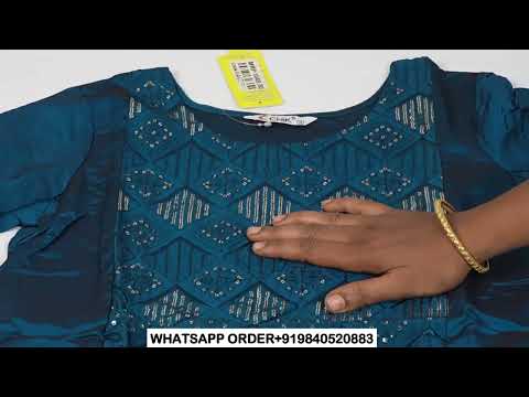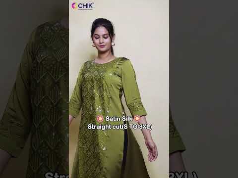 CK-98 OLIVE GREEN COLOUR SATIN SILK FABRIC STRAIGHT CUT KURTA FIT & SEQUENCE EMBROIDERY WORK TOP LENGTH-44'SLEEVE-16'.