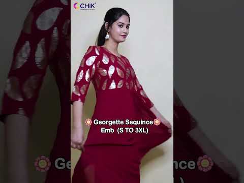 CK-95 DARK MAROON COLOUR GEORGETTE FABRIC ANARKALI FIT & YOKE SEQUENCE EMBROIDERY WORK WITH LINING TOP LENGTH-46' SLEEVE-16'.