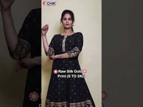 CK-92 Black Colour Raw Silk Fabric Anarkali Fit & Geometric Gold Placement Print Top Length-46' Sleeve-16'.