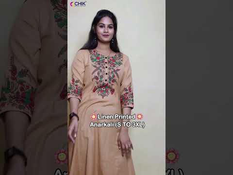 Beige linen cotton Anarkali with elegant placement floral print. Top length 46", sleeve length 16" – breezy, stylish, and perfect for casual and festive wear