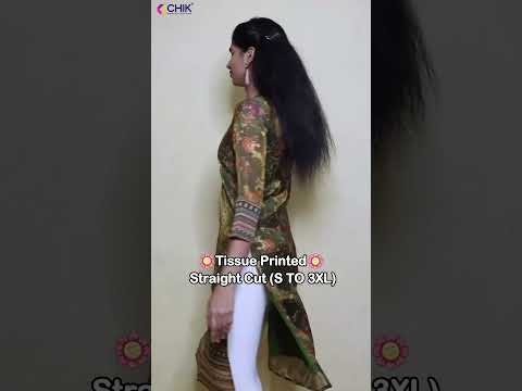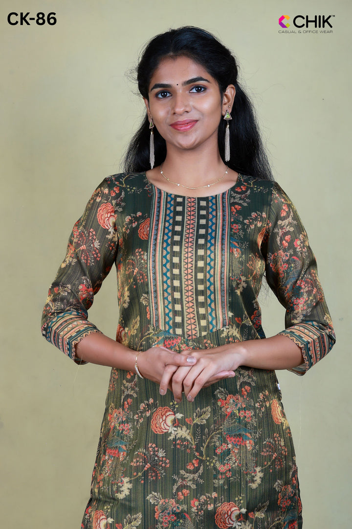 CK-86 Olive Green Colour Tissue Fabric Straight Cut Kuta Fit & Digital Print Top With Lining Length-44 Inch Sleeve 16 Inch.