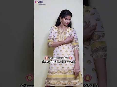 Kerala cream tissue fabric straight-cut kurta with all-over floral digital print and lining. Top length 44", sleeve length 16" – lightweight, vibrant, and perfect for any occasion.