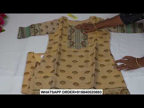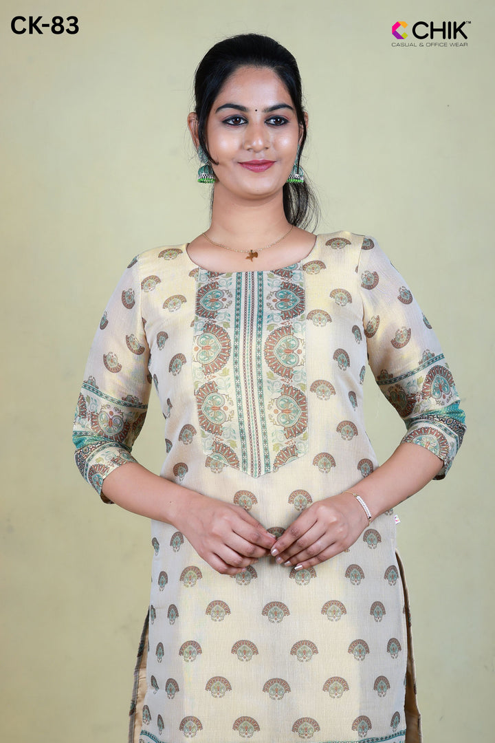 CK-83 Kerala Cream Colour Tissue Fabric Straight Cut Kuta Fit & Digital Print Top With Lining Length-44 Inch Sleeve 16 Inch.