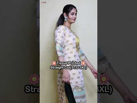 kerala cream tissue fabric straight-cut kurta with all-over floral digital print and lining. Top length 44", sleeve length 16" – lightweight, vibrant, and perfect for any occasion.